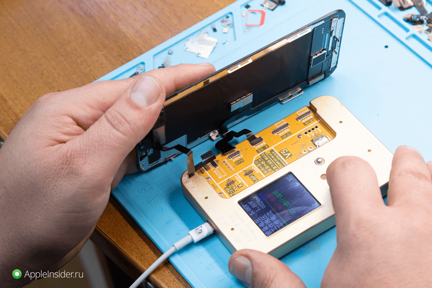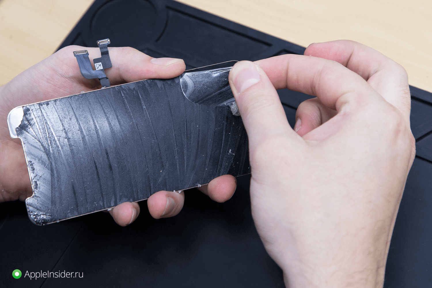 На следующем этапе инженер очищает поверхность дисплея. Работы следует производить очень аккуратно, поскольку OLED-экраны гораздо тоньше, чем их «LCD-братья». Одно неверное движение, и дисплей будет поврежден — поэтому такой ремонт следует доверять только квалифицированным специалистам.