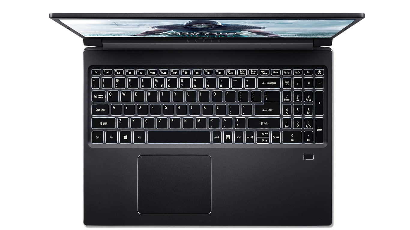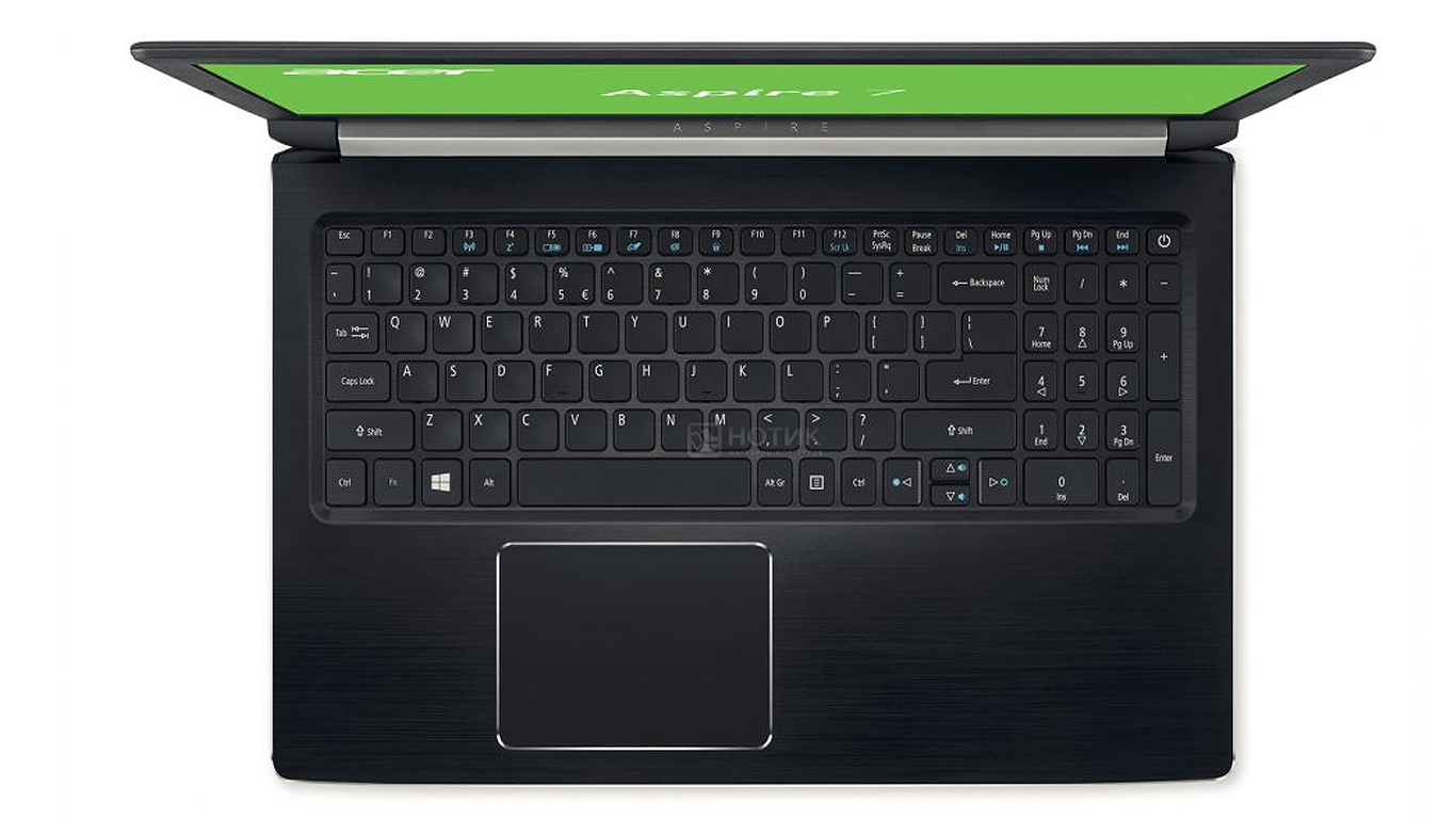 В ноутбуке Acer Aspire 7 A715-72G используется клавиатура островного типа с увеличенным расстоянием между клавишами. Имеется отдельный цифровой блок NumPad. Основные клавиши на клавиатуре имеют размер 15 × 15 мм. Клавиатура имеет жесткое основание и не прогибается при нажатии на клавиши. Ход клавиши тихий, в меру подпружиненный и с легкой, едва заметной фиксацией нажатия. Самое главное, что клавиши не издают неприятный клацающий звук при печати. Из характерных недостатков можно отметить — кучное расположение клавиш со стрелками и расположение кнопки питания в общей массе клавиш. Клавиатура оснащена подсветкой, яркость которой, правда, нельзя регулировать, ее можно либо включить, либо выключить. Тачпад обычный, похвалить его особо не за что, впрочем, как и поругать. Его размеры средние и он смещен влево относительно центра корпуса.