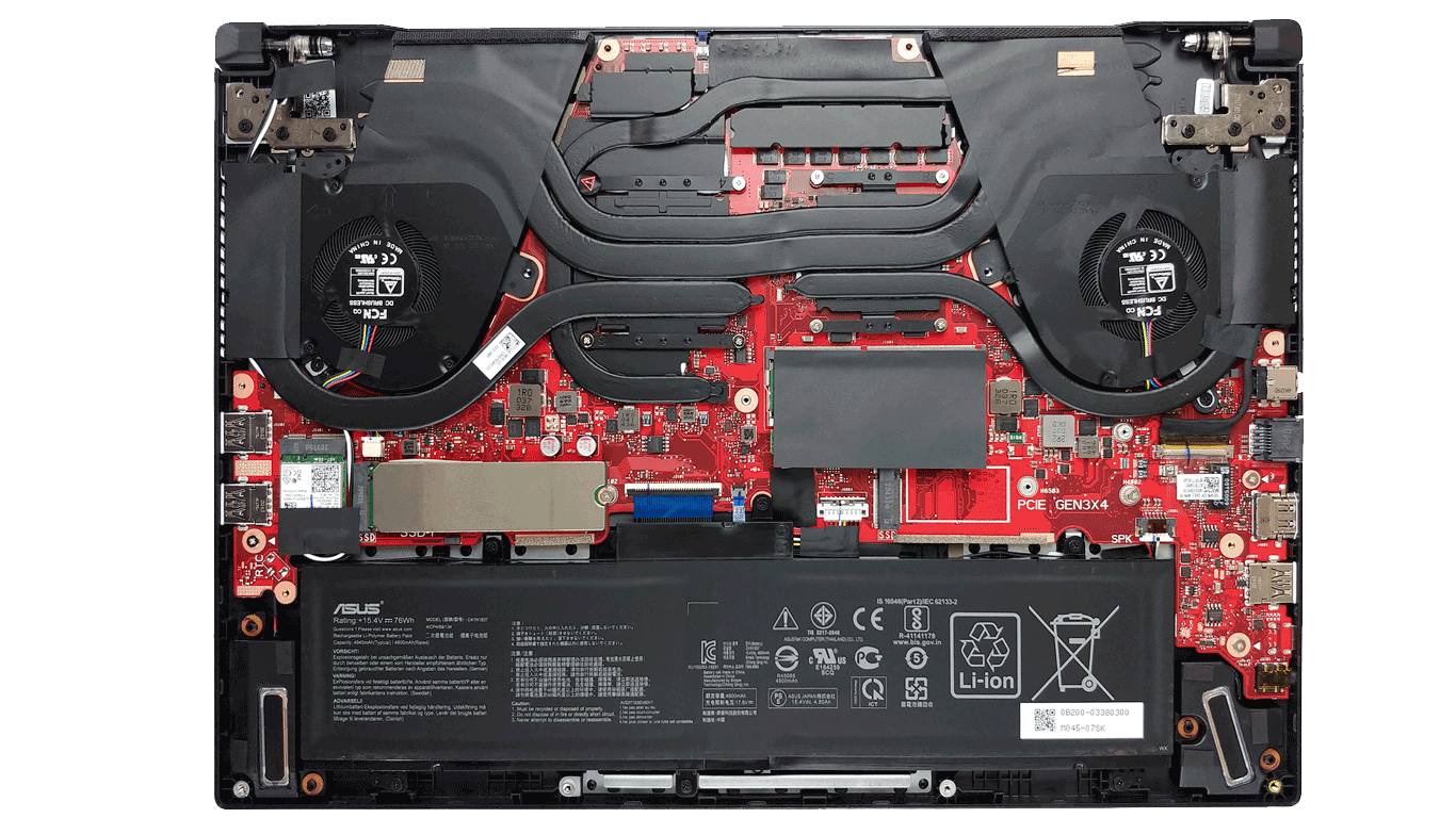 У ноутбука есть дополнительный слот M.2 (для моделей с видеокартой 1660 Ti и выше) и SATA под накопитель 2,5 дюйма (недоступен для моделей с аккумулятором 90 Вт·ч). Накопители M.2 сейчас стоят не так дорого, поэтому пожертвовать емкостью аккумулятора ради дополнительного накопителя SATA мы вам не советуем.