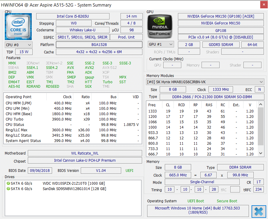 Dell Inspiron 15 5000 5585; WDC PC SN520 SDAPNUW512G |