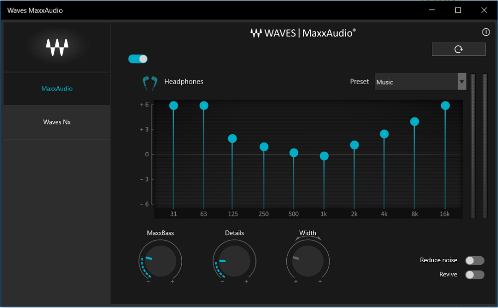Звук поддерживает определенные настройки с помощью программного обеспечения набора Waves MaxxAudio, это касается звука с внешних динамиков и наушников.