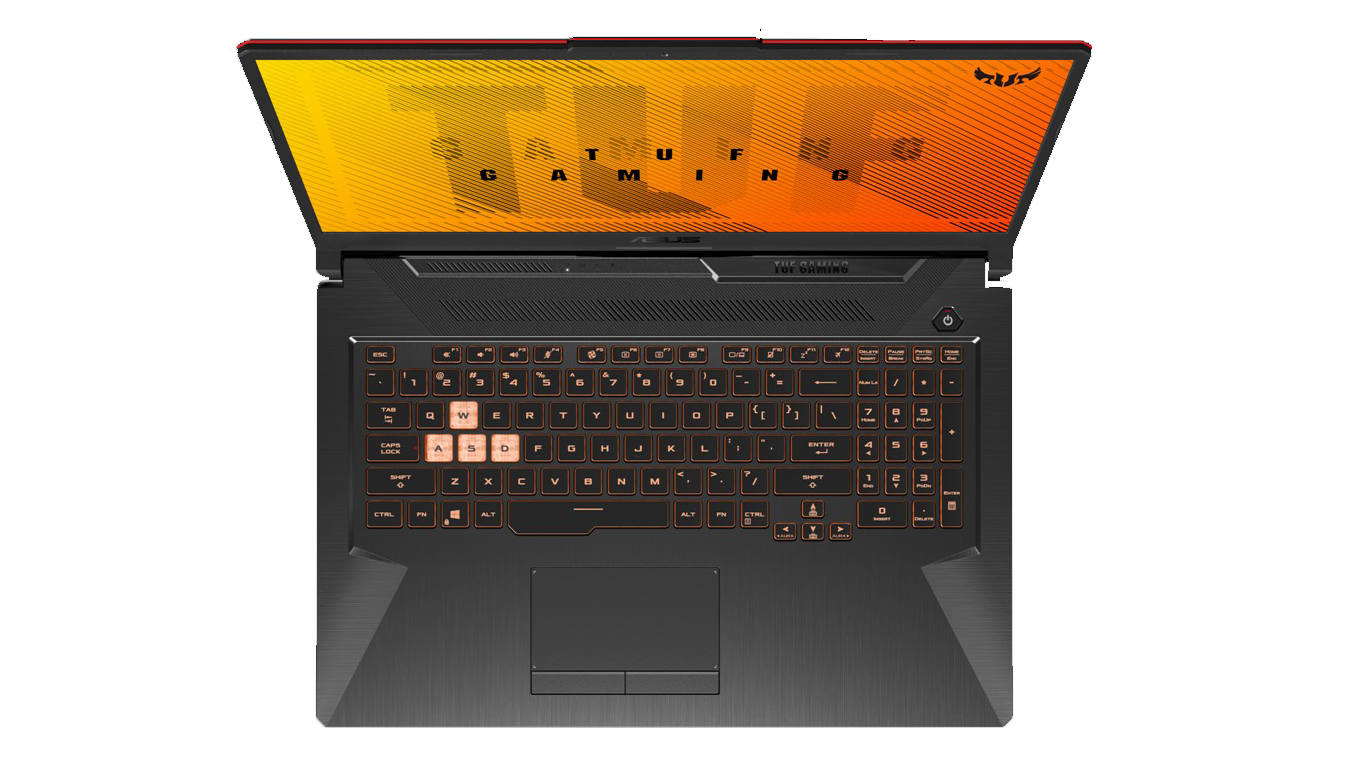 Игровому ноутбуку необходима соответствующая клавиатура, которую и получил ASUS TUF Gaming FX705DY. При её создании учитывались потребности геймеров, поэтому пробел оказался выше обычного, а между функциональными клавишами, в верхнем ряду, есть большие промежутки. Например, между и оставлено больше свободного пространства. Также у модификации ASUS FX705DY, попавшей к нам на тестирование были дополнительно выделены контуры клавиш WASD.