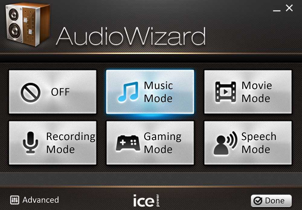 По умолчанию звук достаточно средний по громкости (плюс слегка приглушается из-за расположения динамиков), но качество неплохое. Стоит сказать, что звук можно подкрутить в утилите AudioWizard, разработанной ICEpower. Там есть звуковые пресеты, среди которых можно найти соответствующий вашему вкусу. Звук меняется зачастую в лучшую сторону, во всяком случае — согласно моим личным предпочтениям.