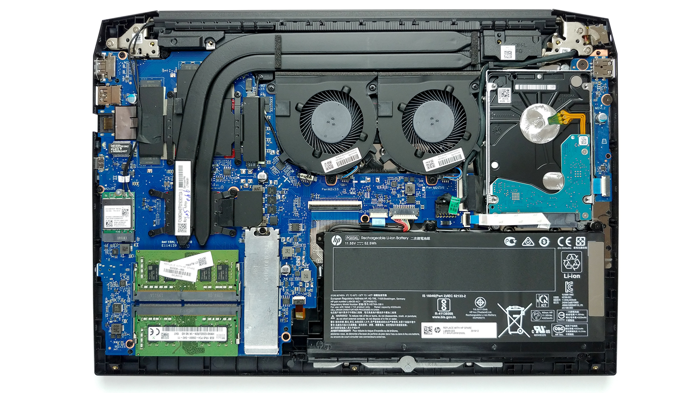 Сначала о вариантах комплектаций HP Pavillion Gaming 15, которые есть в продаже. На выбор будет два процессора: четырехъядерный Intel Core-i5 8300H или шестиядерный i7-8750H. Максимальный объем оперативной памяти— до 16 ГБ. Графические ускорители: Radeon RX 560, GeForce 1050/Ti, GeForce 1060. Вариантов постоянной памяти тоже достаточно. От базовых HDD емкостью от 1 до 2 ТБ, до их сочетаний с SSD от 128 ГБ, только SSD и до гибридных вариантов кэша и жестких дисков по технологии Intel Optane. Наша тестовая конфигурация — одна из самых несбалансированных из всех, которые могут быть в игровых ноутбуках.