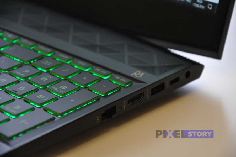 На нижней рамке расположен логотип HP, а чуть ниже, над клавиатурой – направленные вверх динамики закрытый решёткой в виде пчелиных сот. Звук можно настроить через эквалайзер от B&O, но он всё равно остаётся тонким и практически без басов. Кроме того, на максимальной громкости часто появляются искажения.