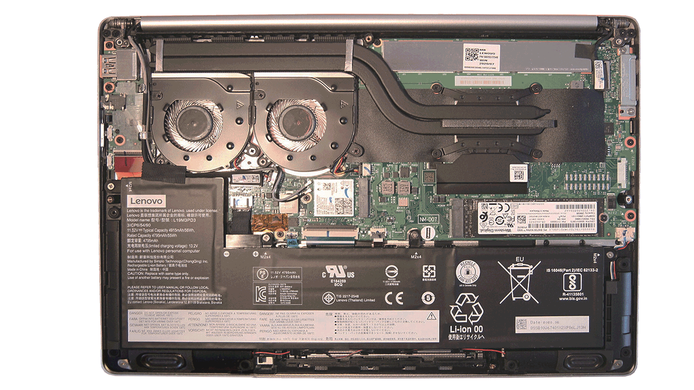 Для разборки ноутбука понадобится отвертка Torx 5H. В первую очередь необходимо окрутить открутить все винты, всего их девять, затем аккуратно отсоединить нижнюю крышку со стороны выхлопа системы охлаждения. Внутри можно заменить аккумуляторную батарею, модуль беспроводной сети и накопитель SSD типоразмера M.2. Чипы оперативной памяти заменен не подлежат так как припаяны к материнской плате.