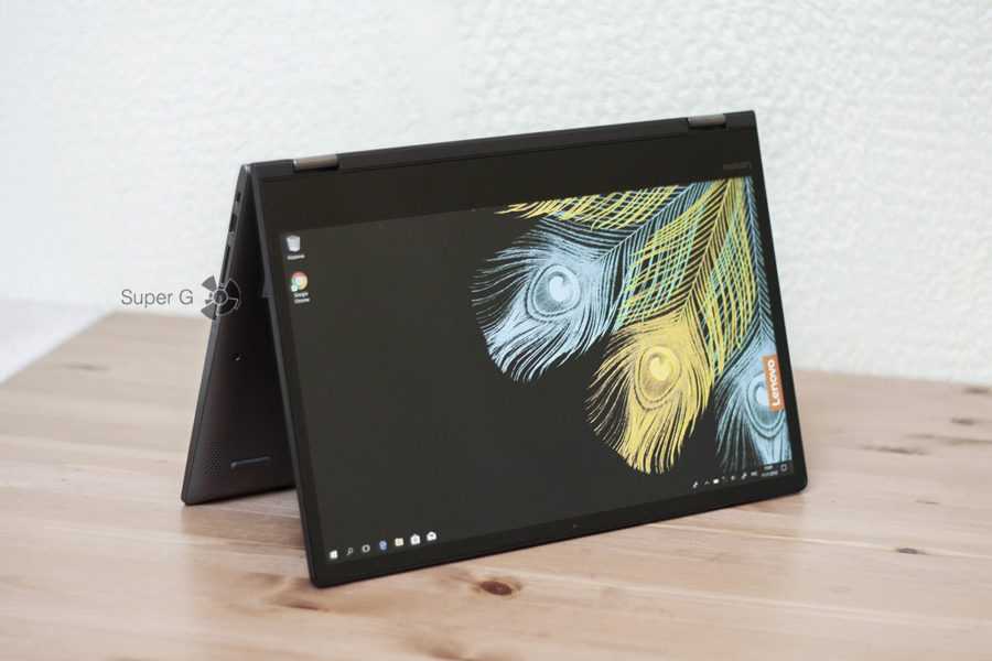 Однако есть компромиссное решение: можно поставить Yoga 530 пирамидкой, чтобы не нужно было держать его на весу. В таком положении работать с сенсорным экраном гораздо удобнее, да и динамики полностью открыты и направлены на пользователя. Кстати, при переводе в планшетный режим клавиатура с тачпадом автоматически отключаются, так что риска случайно что-то нажать нет.