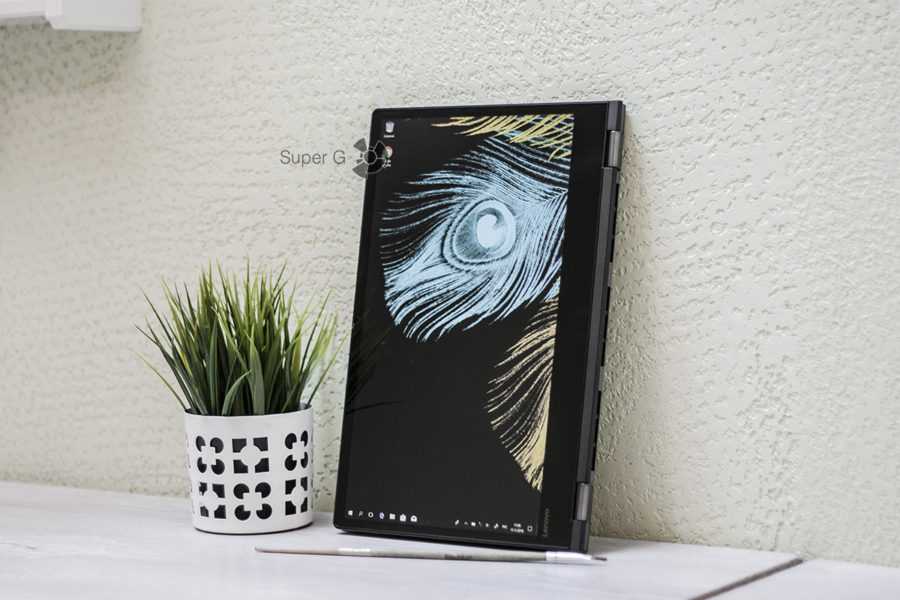 Но главное, что экран — с сенсорным откликом. Именно это превращает ноутбук в планшет для различных целей. Например, для работы в графических редакторах или обычного рисования. Можно, в принципе, пользоваться устройством в планшетном виде на постоянке, но лично мне неудобно делать это на Windows.
