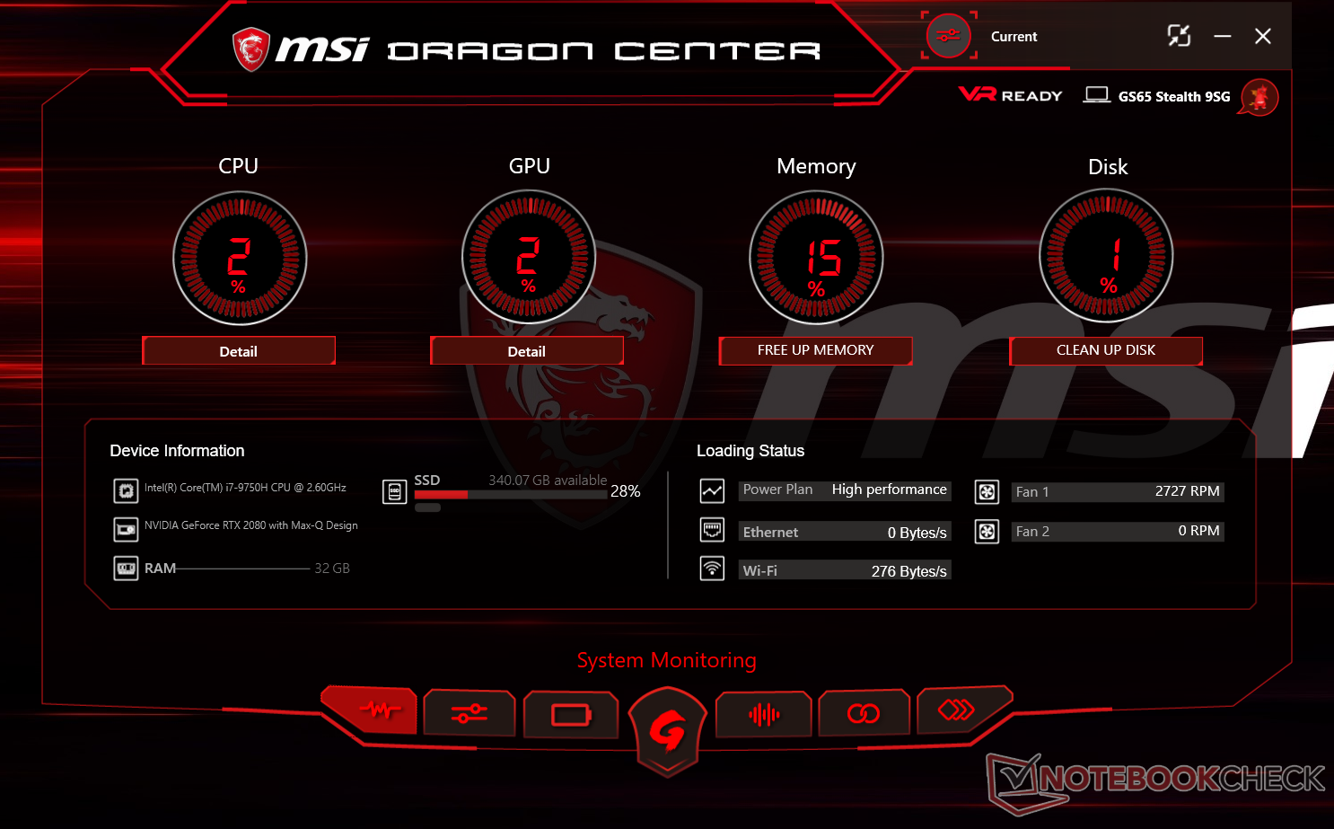 Переработанное приложение Dragon Center 2.0 стало еще функциональнее. Теперь с его помощью можно не только следить за состоянием компьютера, но и оптимизировать его работу, используя профили с настройками. Через Dragon Center 2.0 можно: