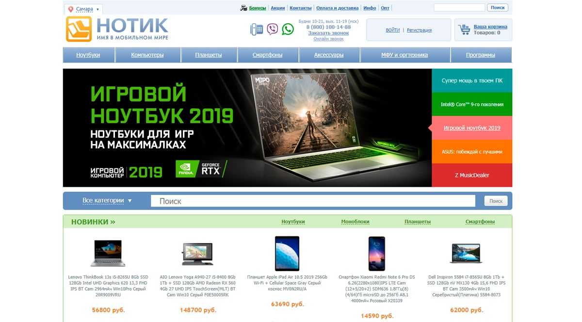 Когда дело доходит до покупки ноутбука, пользователи рекомендуют посетить ритейлера Нотик. Это надежный продавец компьютеров для работы, универсальных решений для дома, ультрабуков, нетбуков и сумок. Онлайн помощник поможет приобрести ноутбук для 3D моделирование, видеомонтажа, серфинга в интернете, просмотра сериалов и онлайн игр.