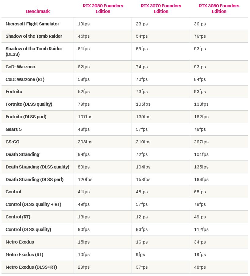 В расчете на использование только DLSS карту RTX 3070 с натяжкой можно назвать игровой картой класса «4K, 60 fps» для большинства сегодняшних игр, но в будущих играх ее потенциала может не хватить. Поскольку уже сегодня мы видим, что есть игры – например, Metro Exodus и Microsoft Flight Simulator, – в которых эта новая карта недотягивает даже до 30fps без снижения настроек графики.