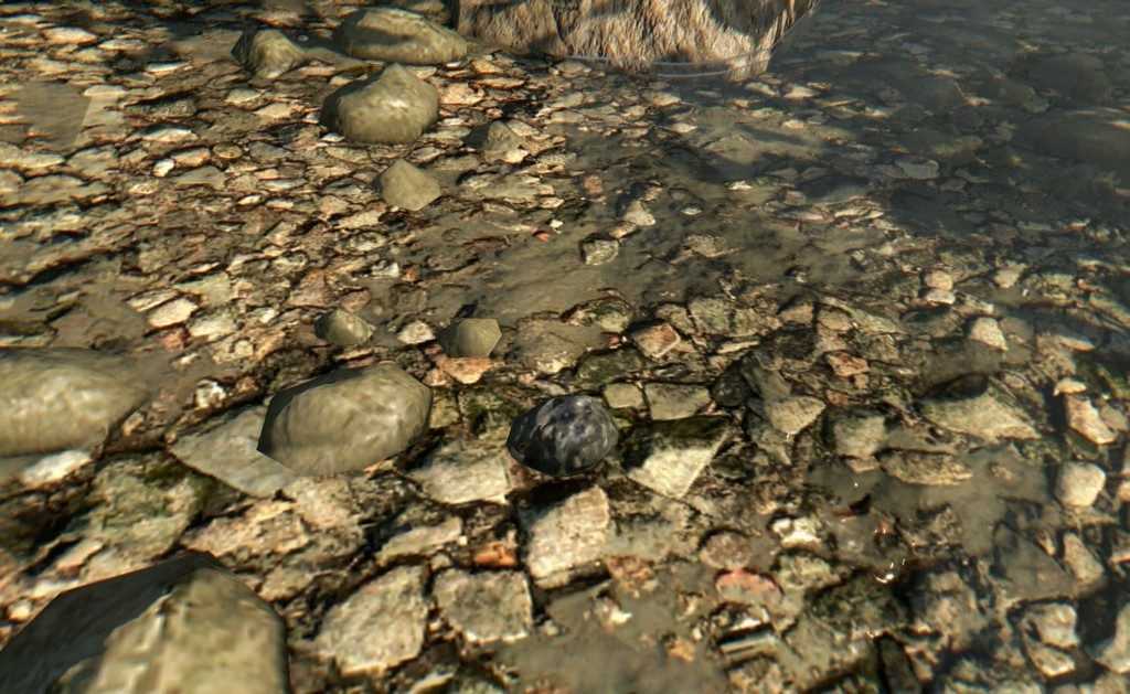 Пятый камень вы можете отыскать возле стенки ограничивающей территорию, неподалёку от берега (камень будет находится в воде).