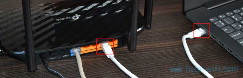 - Проверьте, как подключено оборудование. На концах сетевого шнура есть коннекторы, и оба должны быть вставлены в правильные разъемы как на роутере, так и на компьютере/ноутбуке.