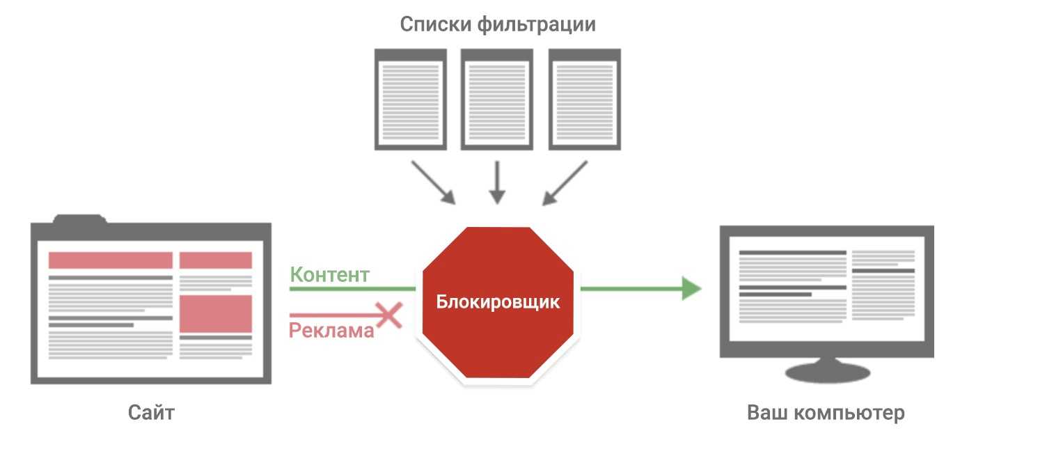 Блокировщики работают с помощью списков фильтрации, набора правил в текстовом формате. На основе этих правил фильтруется весь контент сайта: что можно показать, а что нужно скрыть.