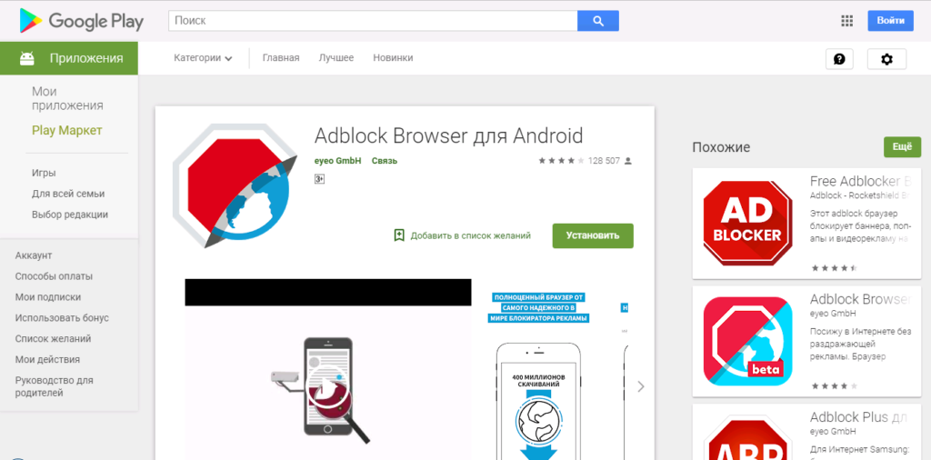 – очищает сайты от назойливого контента. Допускается установка на планшеты и