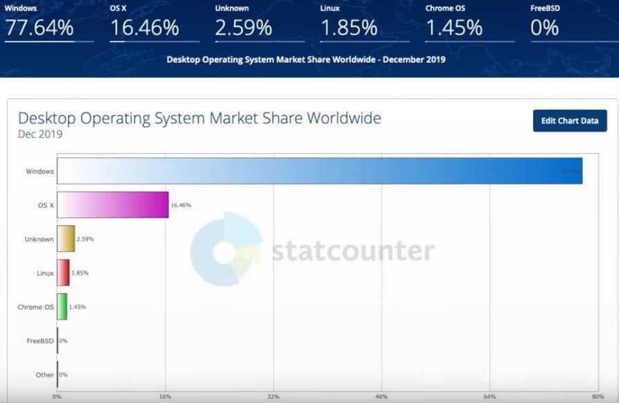 Как можно заметить, минусов больше, чем плюсов, но тем не менее общество покупает Windows. Более 90% пользуются ОС компании Microsoft и только 3 — 4% пользуются «операционкой» Linux.