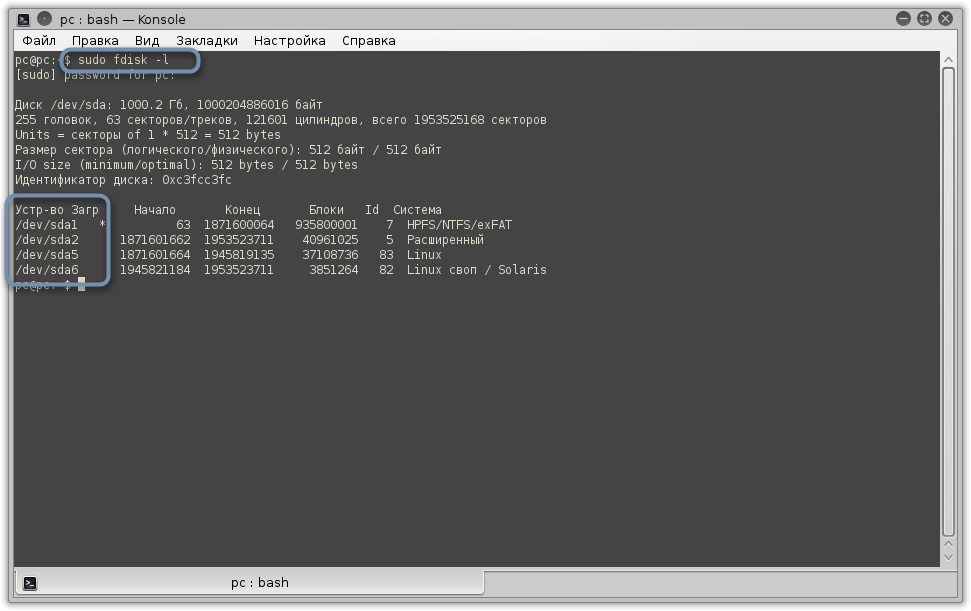- Посмотрите все разделы, введя p и нажав на Enter.