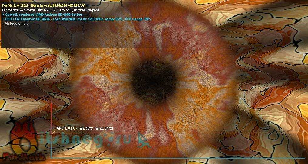 Это так называемый мохнатый бублик (волосатый бублик) FurMark. В это время программа будет проводить тест видеокарты, а выдаваемая информация покажет вам поведение видеочипа при нагрузке. Соответственно вы можете узнать обо всех ошибках и неисправностях своего видеоадаптера.