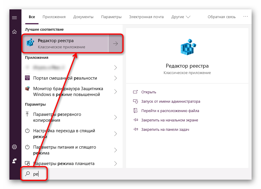 Теперь, когда служба запущена и настроена, можно снова пробовать искать редактор реестра в меню «Пуск».