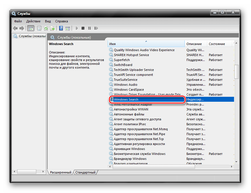 Если опция поиска не работает, то велика вероятность, что в операционной системе отключена служба «Windows Search». Ее можно включить, чтобы сейчас и в дальнейшем беспрепятственно пользоваться поисковиком через «Пуск».