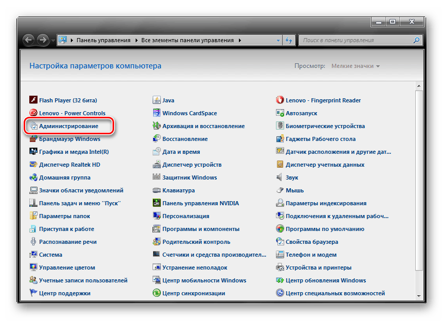 - Далее найдите «Администрирование» и щелкните по этой надписи.