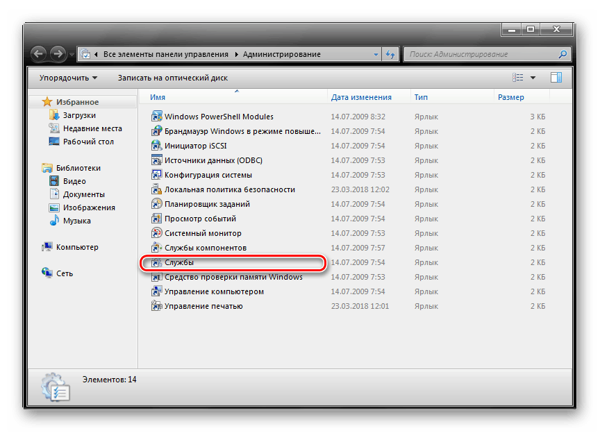 - Выберите раздел «Службы».
