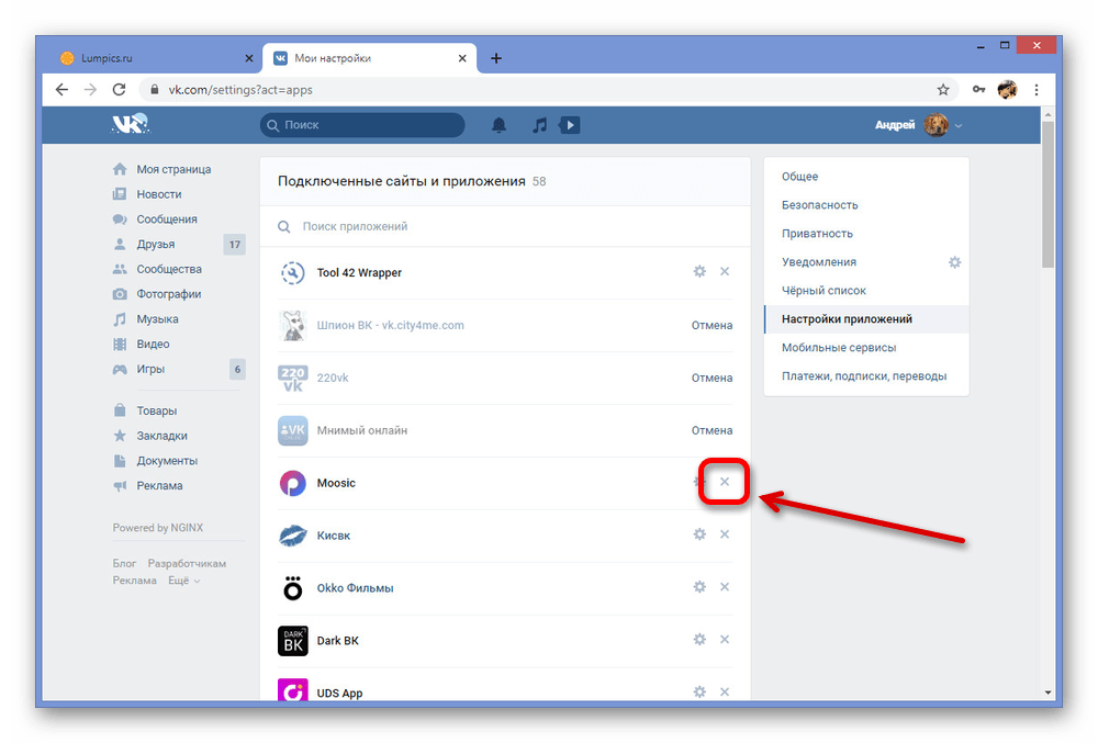 Чтобы произвести непосредственно само удаление, достаточно будет кликнуть по пиктограмме с крестиком в строке того или иного приложения. Данное действие не требует подтверждения и предоставляет возможность отмены.
