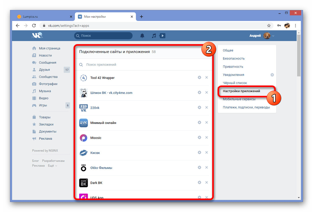 С помощью дополнительного списка перейдите на вкладку «Настройки приложений» и выберите варианты, вызывающие у вас какие-либо сомнения. Рекомендуется удалить различных ботов и альтернативные клиенты.
