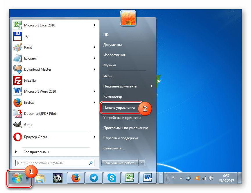 - Нажмите на «Меню пуск» и кликните «Панель управления».