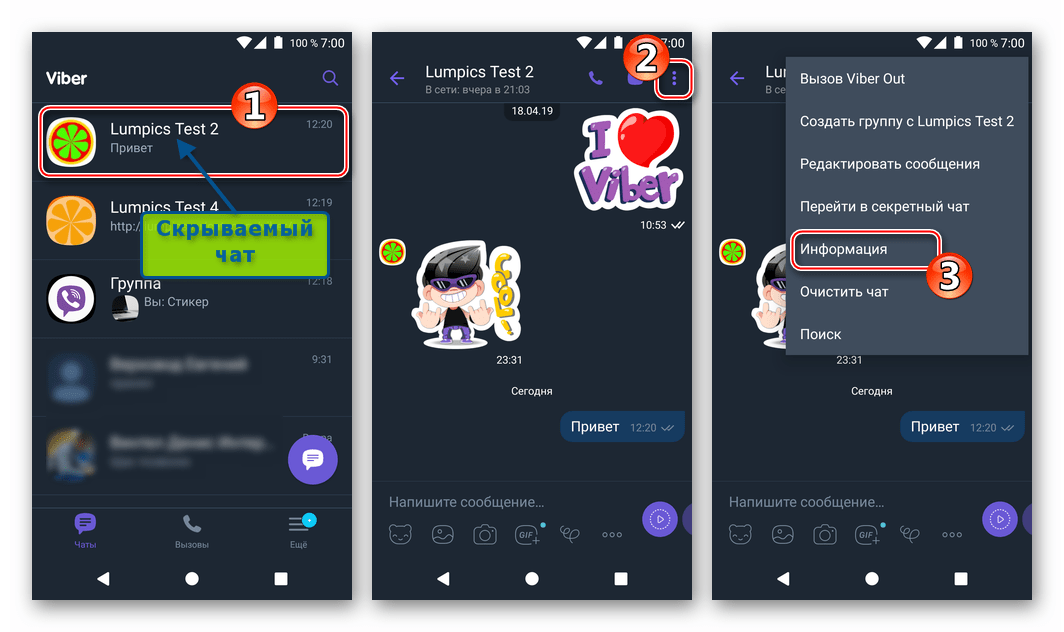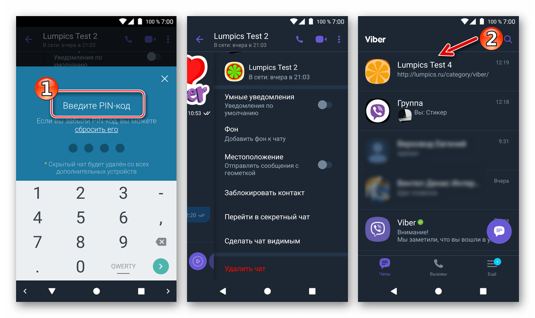 Сделать скрытый чат в Вибере на этой ОС можно 2 способами. Первый: