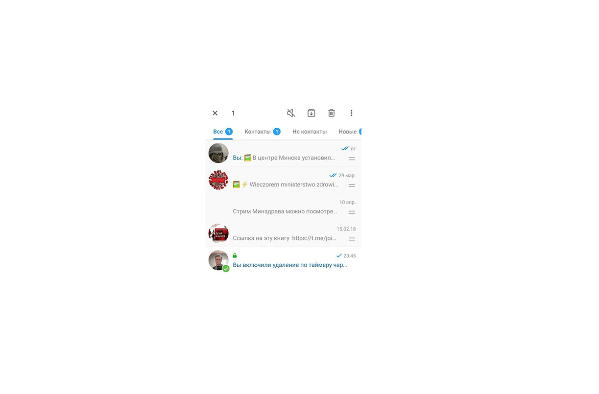 нажать на появившуюся строку, и все отключенные переписки исчезнут с диалогового экрана.