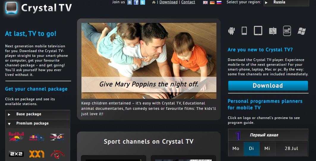 В отличие от предыдущего приложения, эта программа является кроссплатформенной. То есть она доступна как на компьютерах, так и на мобильных устройствах. Но в магазине приложений Crystal TV найти не получится. Скачивать apk-файл придется с официального сайта.
