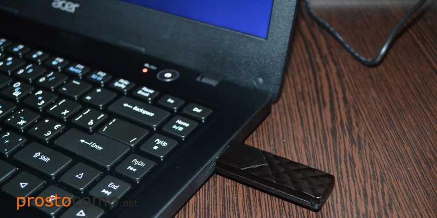 Если вы будете выполнять установку с диска, то вставьте его в привод. Если с флешки, то подключите ее в USB-порт ноутбука. Только подключайте в USB 2.0 (этот порт НЕ синий внутри). Если подключить к USB 3.0, то могут возникнуть некоторые проблемы.