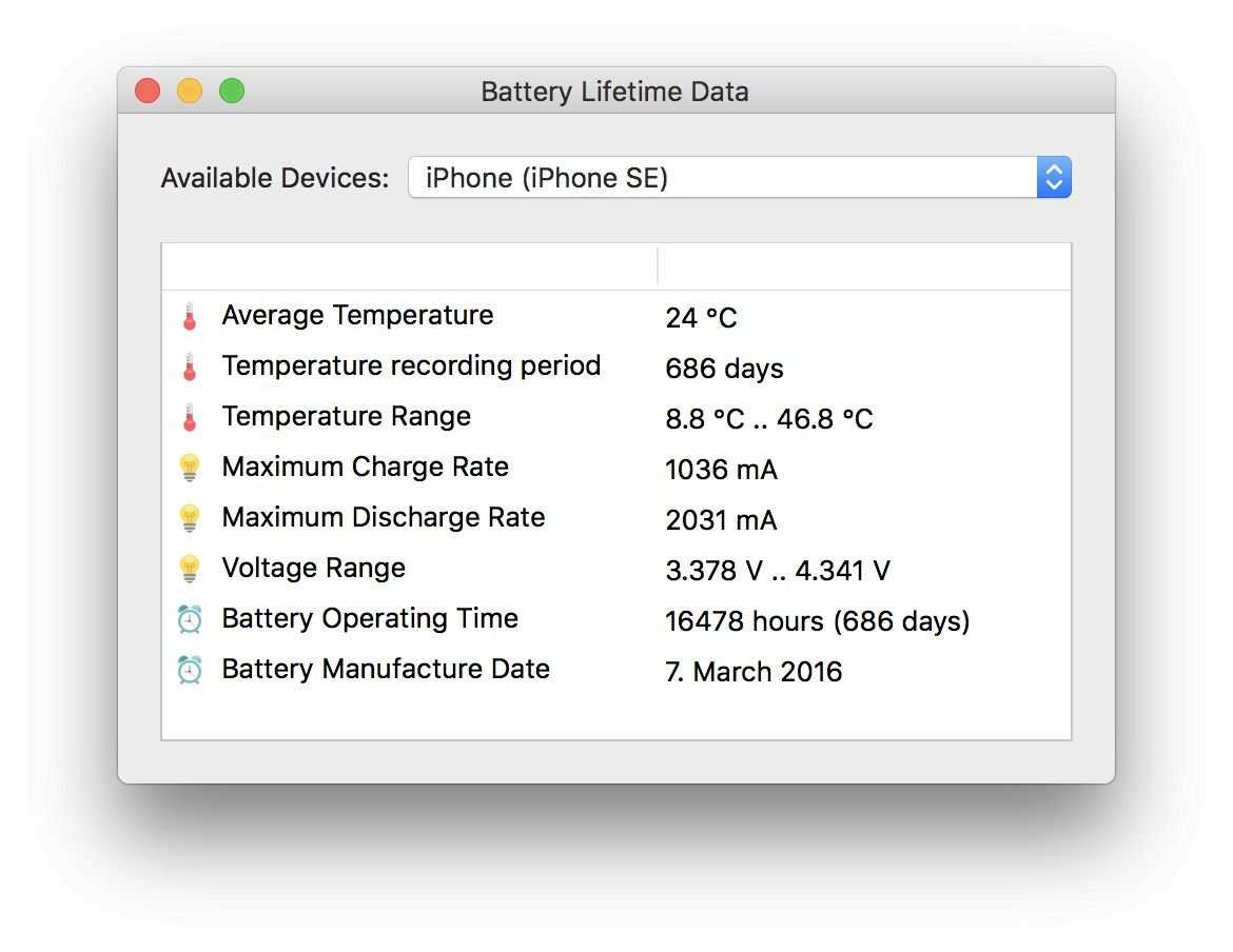 С помощью этого инструмента вы получите подробные сведения не только о состоянии аккумулятора, но и о текущем уровне заряда, максимальной емкости, а также об уже пройденных циклах перезарядки. Благодаря этому вы сможете быстро выявить суть часто встречающихся проблем аккумулятора, например, слишком быструю разрядку.