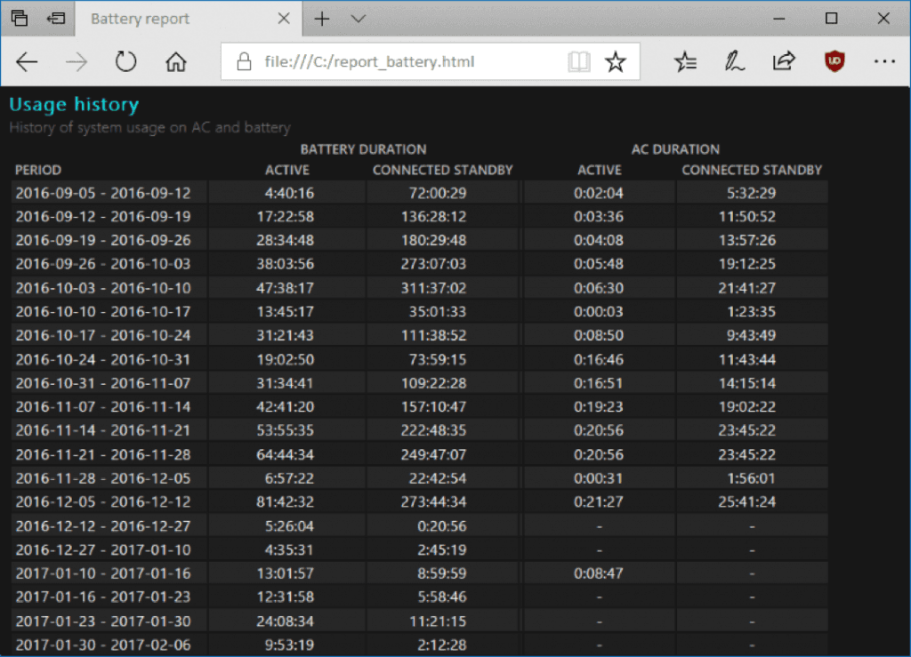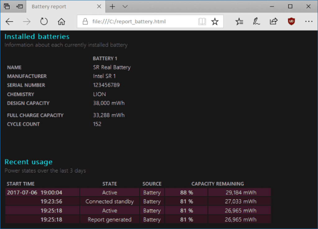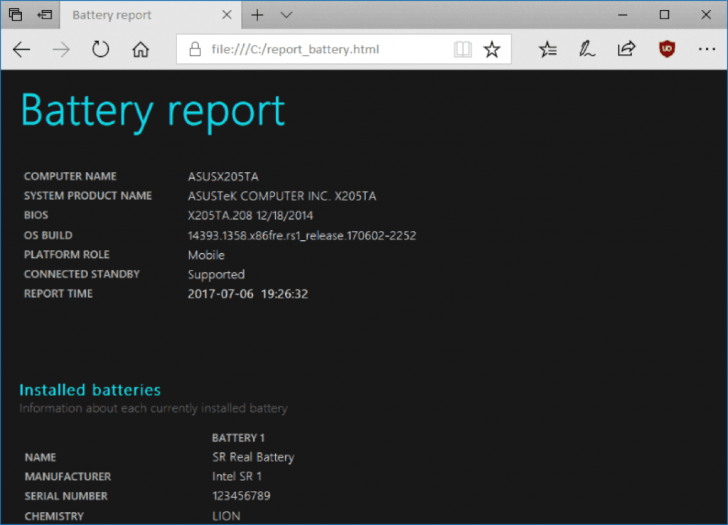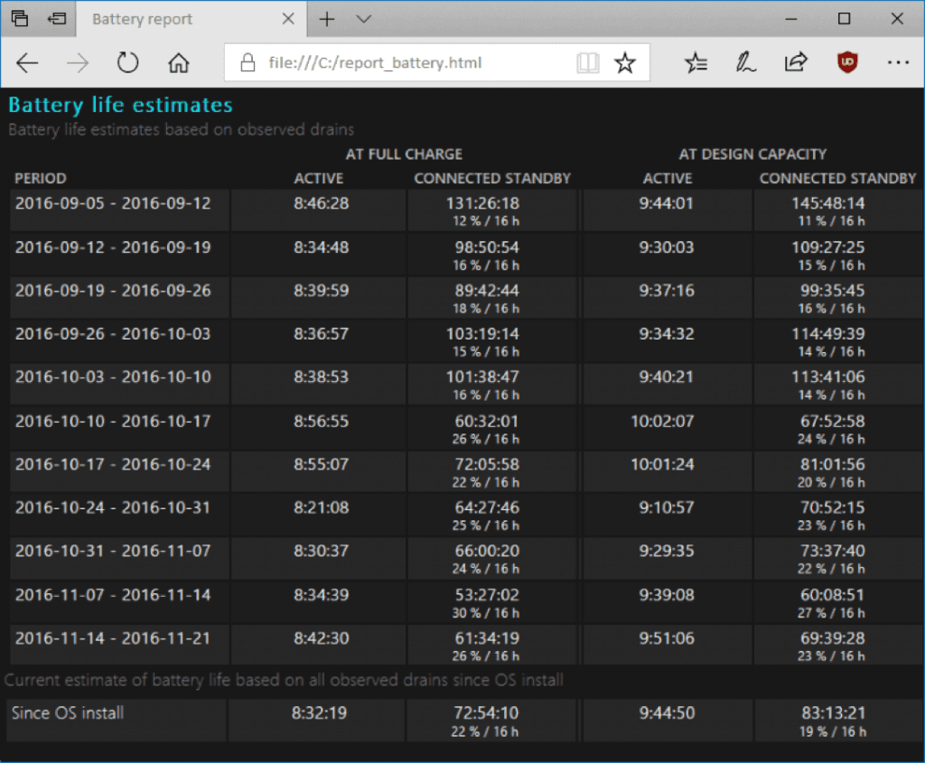 и носит имя «battery-report«. Формат файла HTML, поэтому открыть его можно в любом веб-браузере.