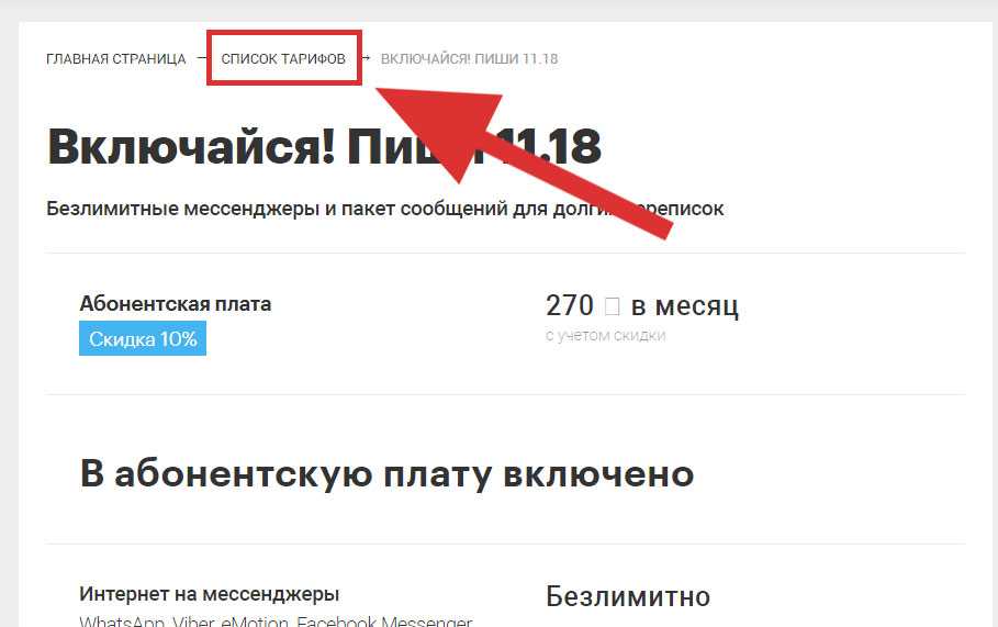 Второй простой способ ознакомления с тарифом выглядит так: