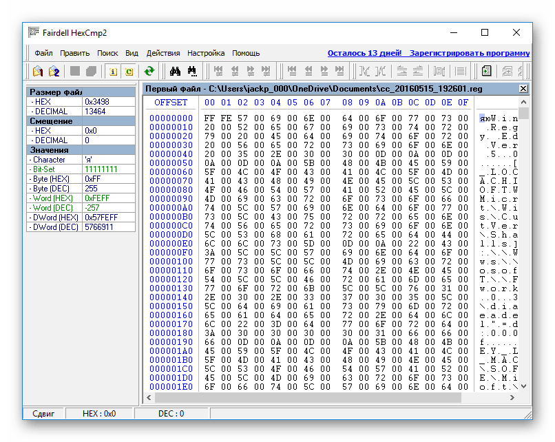 У этой программы есть сразу две важные особенности. Она использует шестнадцатеричную систему и способна сравнивать двоичные файлы. Имеет расширенные функции, такие как цветовое выделение и синхронная прокрутка, а также обладает панелью, содержащей информацию о записях в различных форматах.