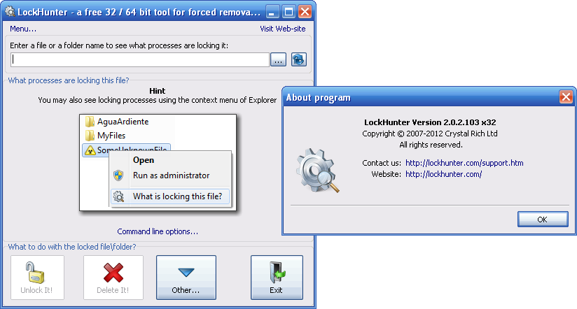 Одной из достойных альтернатив популярной утилиты Unlocker является LockHunter. Интегрируемая в «Проводнике», она позволяет избавляться от любых проблематичных файлов.