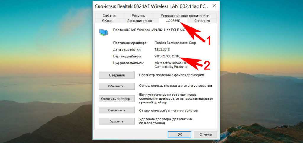 Вдруг увидите на беспроводном сетевом адаптере восклицательный знак или желтый треугольник, значит проблема с драйвером. Удалите полностью старый, скачайте самый последний с сайта производителя и установите. Во вкладке «Драйвер» вы найдете все необходимые данные о версии и производителе драйвера.