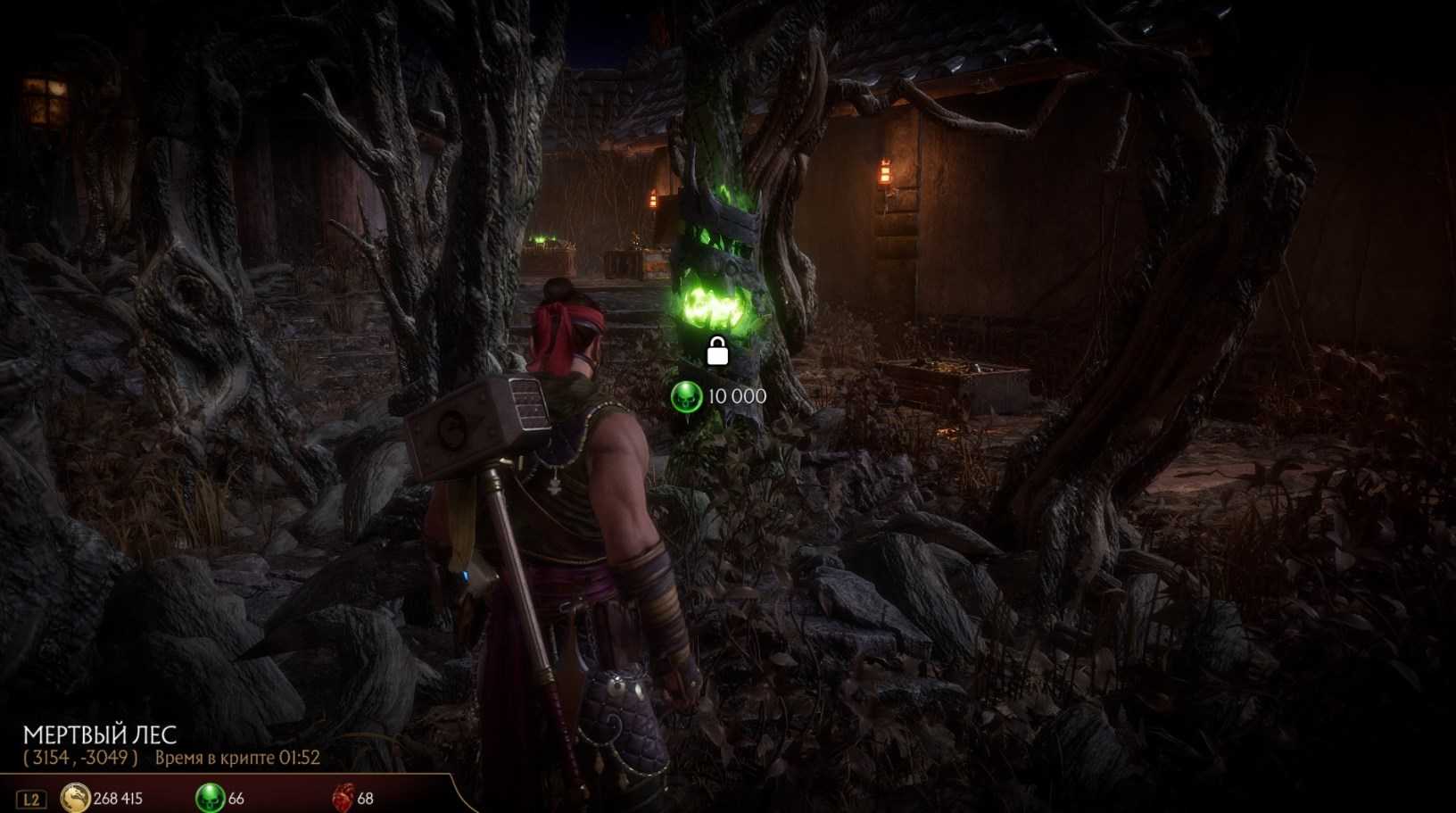 Амулет Шиннока нужно скрафтить из трех отдельных предметов в кузнице. Чтобы получить первый, отправляемся фармить целых 10 тысяч фрагментов душ. Сделали? Ок. Теперь ищем специальный алтарь в Мертвом лесу и открываем его — тогда вы получите Камень пойманных душ.