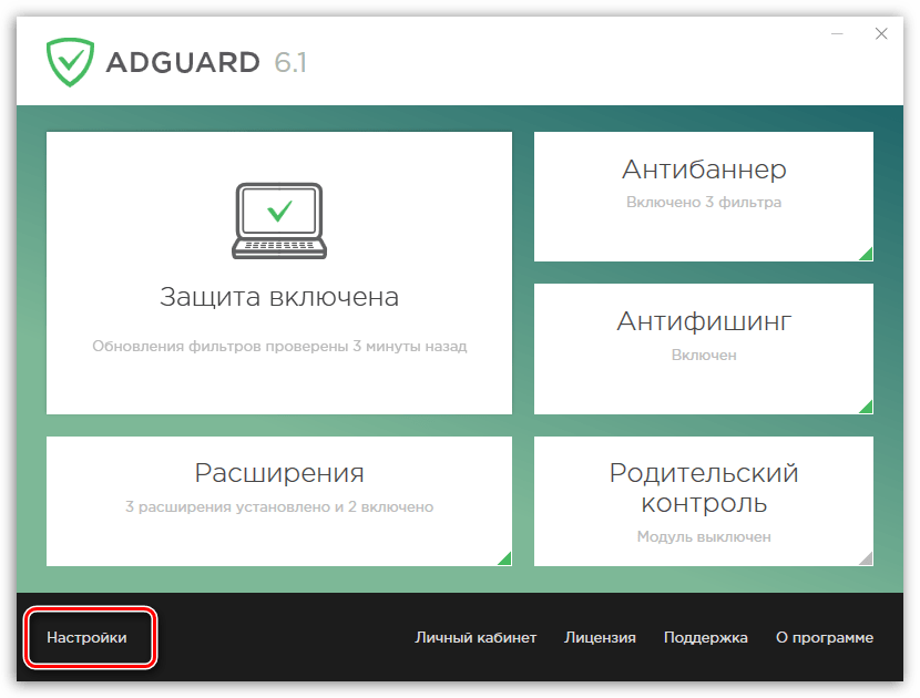 Шаг 1. Кликнуть на упомянутый значок и выбрать пункт «Настроить Adguard».