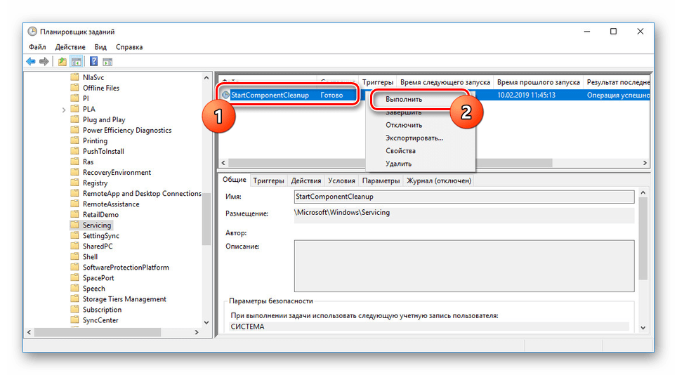 - Переходим в раздел Библиотека планировщика заданий > Microsoft > Windows > Servicing.