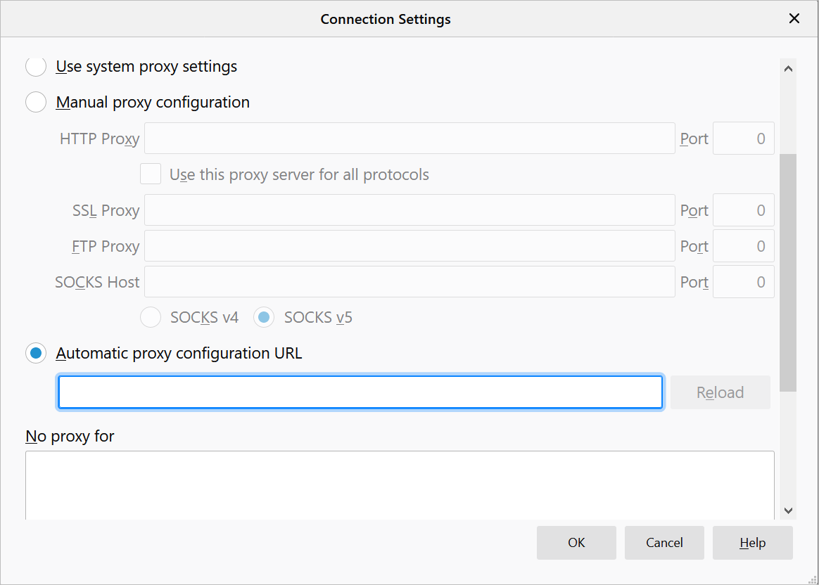- Введите исключение для адресов локальных и других веб-сайтов в текстовое поле «Нет прокси для».