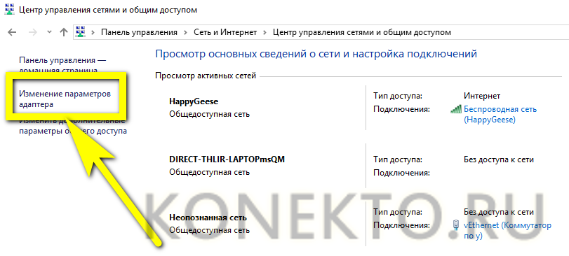 А затем последовательно заходит в подразделы «Центр управления сетями».