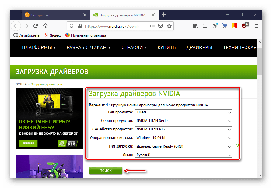 Видеодрайверы для дискретной графической платы загружаем с официального сайта ее производителя. Если они уже установлены, но система все равно не видит устройство, сделайте чистую установку с удалением старого ПО, например, с помощью утилиты DDU. О способах обновления драйверов видеокарты и удаления уже установленных мы подробно писали в отдельных статьях.