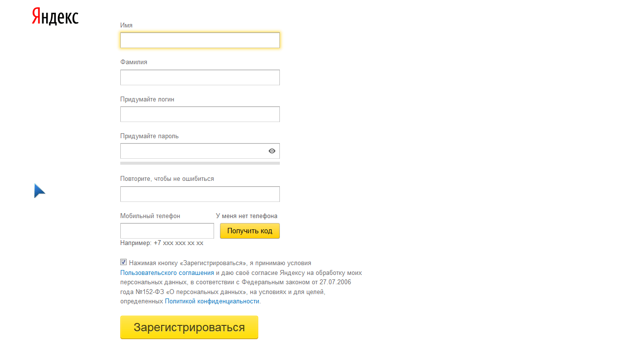 Для входа в облако нужен существующий почтовый профиль в системе Яндекса. Если у вас нет аккаунта, сначала зарегистрируйте его. Следуйте инструкции:
