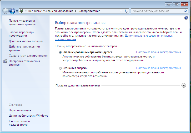 Здесь очень важно правильно выставить режим электропитания, ведь по умолчанию системой выбирается «Сбалансированный». При вышеуказанной процедуре рекомендуется установить «Высокую производительность» в настройках, поскольку при этом выключаются разнообразные энергосберегающие технологии и вероятность удачной калибровки повышается