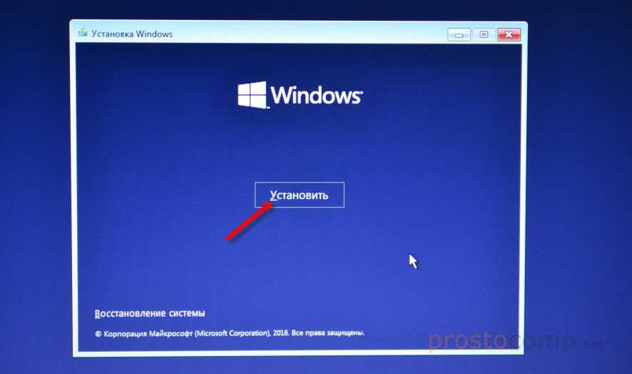 Выбираем. Нажимаем кнопку Далее. На голубом экране появится большая кнопка Установить.