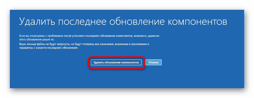 Выберите действие «Удалить последнее обновление компонентов». В будущем вы сможете вернуться сюда же, чтобы указать «Удалить последнее исправление», если первый вариант не поможет.
