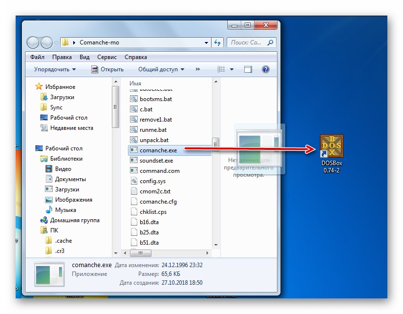- После того как нужный файл будет найден, необходимо его перетащить прямо на ярлык эмулятора «DOSBox» и игра тут же запустится.